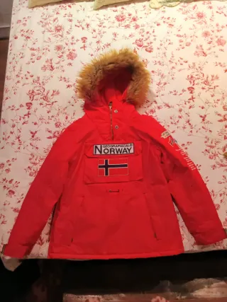Chaqueta de Geographical Norway en color rojo. - Diseño acolchado. - Bolsillo frontal con cremallera y logo. - Bandera de Noruega en la parte frontal. Talla 10 años