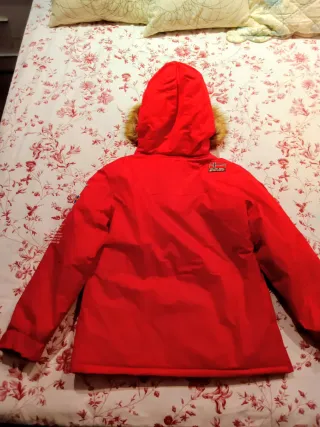 trenka de abrigo niña(vale para nieve) con capucha,cremallera ,2 bolsillos con cremallera,impermeable y ligera. Muy comoda ,de lavado facil . Para edad de 11-12años:60cm de largo,manga 60cm y anchura de pecho 40cm