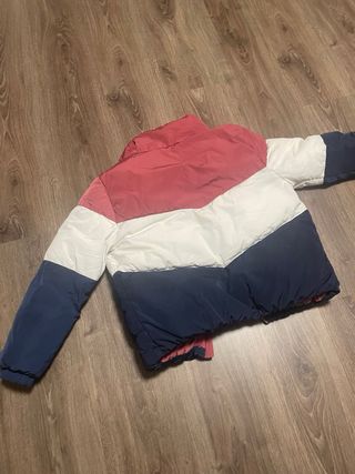 Chaqueta acolchada con capucha, perfecta para mantener el calor. Las arrugas son por la falta de uso y quedarse un tiempo en el armario en su percha, lo vendo pq no lo quiero y ya no me gusta. - Cierre de cremallera frontal. - Bolsillos laterales con cremallera. - Diseño acolchado horizontal. - Logo de la marca en el pecho y uno muy sutil en la espalda