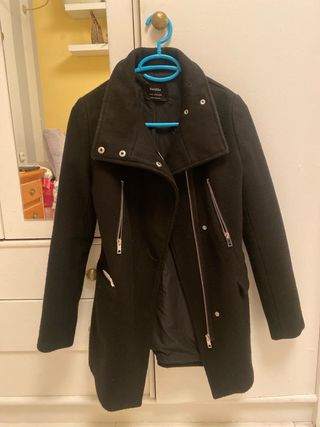 Abrigo negro Bershka Xs llega por debajo de la cintura. puede valer para niña