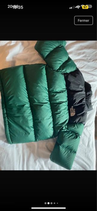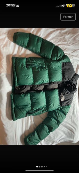 Chaqueta acolchada The North Face con un diseño bicolor. talla XL de niño, equivalente a XS-S de adulto, bien cuidada - Color verde y negro. - Cierre de cremallera frontal. - Bolsillos con cremallera.