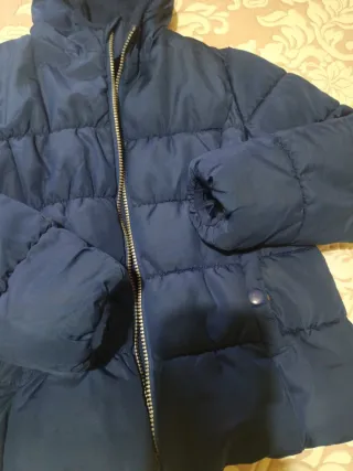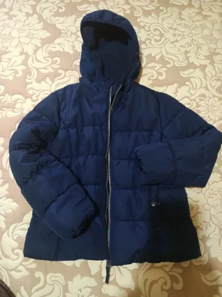 Abrigo infantil de color azul, perfecto para mantener el calor, con forro polar interior. Talla 15-16. - Diseño acolchado. - Capucha integrada. - Cierre de cremallera frontal. - Bolsillos laterales.