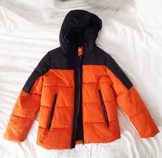 Chaqueta de abrigo para niño o adolescente, ideal para los días más fríos. Combina dos colores negro y naranja,llamativos para un estilo moderno. Para niños/adolescentes de 12/13 años. Muy abrigada. COmo nueva, casi sin usar - Diseño acolchado. - Capucha integrada. - Cremallera frontal. - Bolsillos laterales con cremallera.
