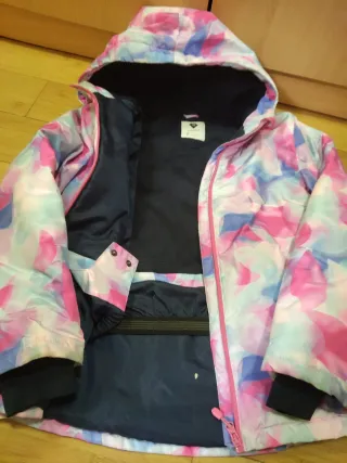 Chaqueta de esquí para niña de la marca Roxy, talla 12. Presenta un diseño llamativo con estampado. - Diseño con estampado. - Capucha integrada.