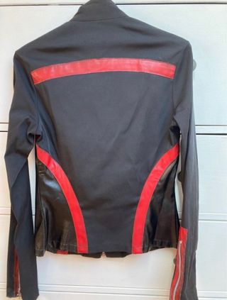 Chaqueta estilo motero en rojo y negro, con cremalleras, original de los años 2000. Puesta varias veces pero muy bien conservada. Todo el dinero va integramente para la protectora APAGUAS (Adopta un Perro de AGUAS) y para ayudar a gatitos callejeros.