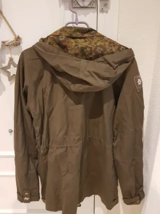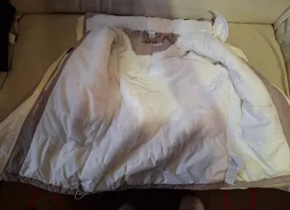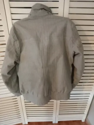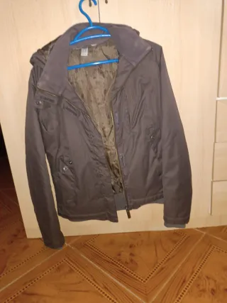 Chaqueta acolchada con capucha. - Cierre de cremallera frontal. - Puños ajustables. Tiene algunas manchas pero está en buen estado.