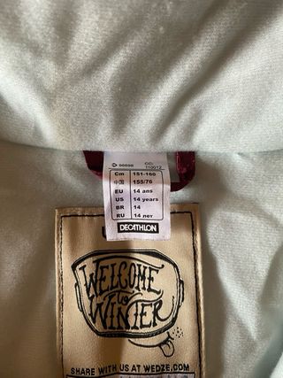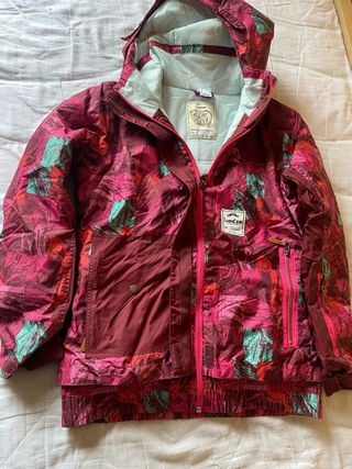 Abrigo de nieve para niña de la marca Quechua. - Diseño bicolor en tonos rojos y fucsia. - Capucha integrada. - Cremallera frontal. - Bolsillos laterales con cremallera. Precio negociable