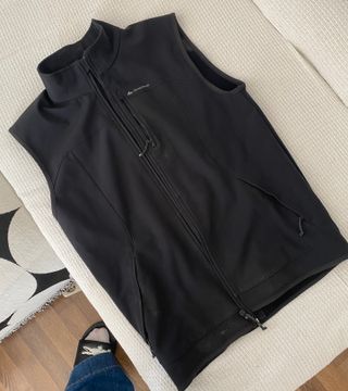 Chaleco ligero de la marca Quechua en color negro. Ideal para actividades al aire libre, talla L hombre. - Cierre completo con cremallera. - Bolsillos laterales con cremallera. - Cuello alto.