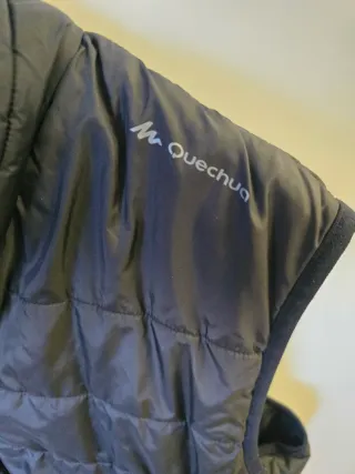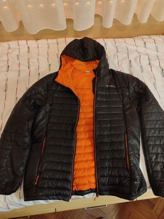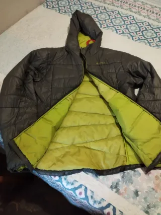 ¡Chaqueta técnica ideal para montaña o ciudad! Vendo plumífero acolchado de la marca Quechua (Decathlon). Es una prenda muy ligera pero que abriga mucho, perfecta para llevar en la mochila ya que ocupa muy poco espacio. Marca: Quechua. Color: Negro exterior con forro interior naranja vibrante a contraste. Diseño: Acolchado horizontal con capucha integrada para mayor protección. Detalles: Cierre principal y bolsillos laterales con cremallera en color naranja. Logotipo de la marca en el pecho. Estado: Muy bien conservada, lista para usar. 💰 Precio negociable. Escucho ofertas, ¡hazme la tuya!