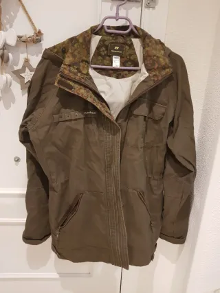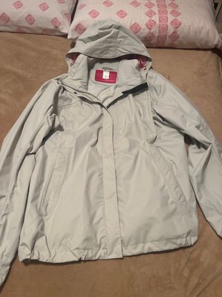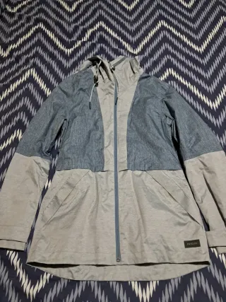 Cazadora de la marca Quechua en color gris. Ideal para actividades al aire libre. - Cierre de cremallera. - Bolsillos frontales con cremallera. - Cuello alto. - Puños y cintura elásticos. Tiene capucha con lana que se puede quitar .las medidas son: de axila a axila 54 cm, dé hombro a hombro 48 cm de largo 64 cm. Y de manga 64 cm.