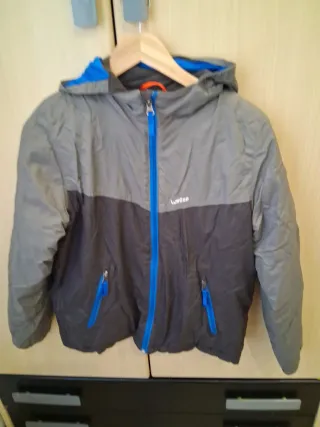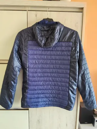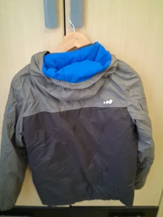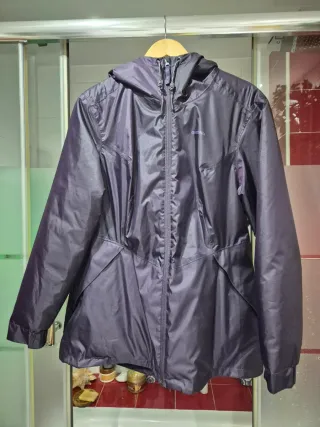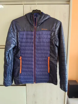 Abrigo de la marca Quechua en color azul. -muy cálido .soporta hasta -10•c - Capucha ajustable. - Bolsillos frontales con solapa. - Cierre de cremallera. - Puños ajustables con botones.