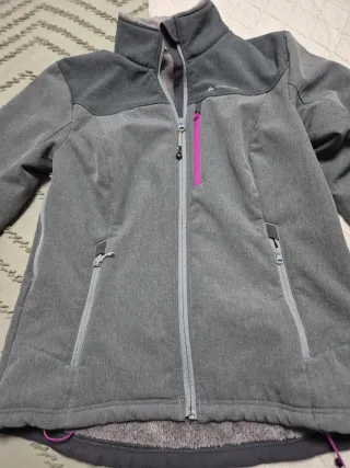 Chaqueta Quechua de color gris con detalles en rosa. - Cierre de cremallera. - Bolsillos laterales con cremallera. - Forro interior suave.