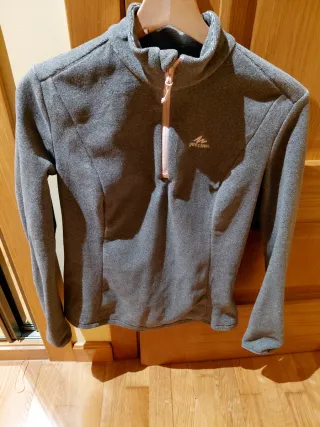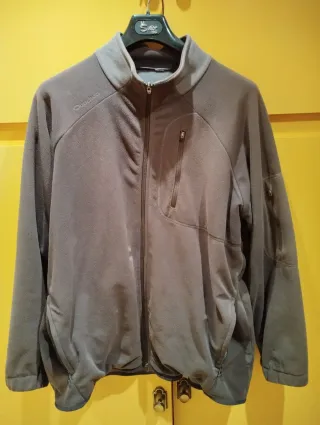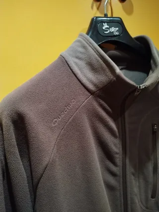 Forro polar de la marca Quechua para hombre. En tono marrón. Con cierre de cremallera y bolsillo con cremallera en el pecho. Bolsillos laterales también con cremallera. Con desgastes del uso.