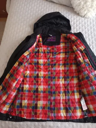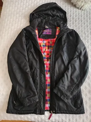 Abrigo ideal para la nieve, con un diseño funcional y moderno. - Capucha con pelo. - Bolsillos frontales en cintura y pecho. - Doble cierre: cremallera y botones. - Su precio original es de 120€.