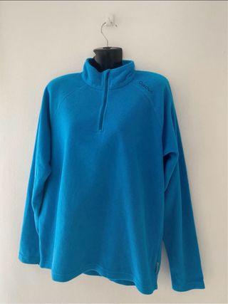Polo de manga larga de la marca Quechua en color azul. - Cuello alto con media cremallera. - Tejido de forro polar. - Logo de la marca bordado en el pecho.