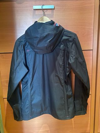 Perfecta para rutas de senderismo y tu día a día. Protege de la lluvia y del viento. Cuello alto, puños ajustables, capucha guardada, cierre de cremallera frontal, bolsillos laterales y un bolsillo interior.