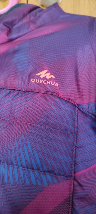 Cazadora acolchada con capucha, de la marca Quechua un poco entellada, ligera y equivale a una M/L, fácil de poner con todo , calentita y de pluma y no pesa nada!!! - Cierre de cremallera. - Bolsillos laterales con cremallera. - Diseño ligero y cálido.