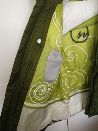 Cazadora Plumifero de color verde y blanco con relleno de plumas Muy calentita con cierre anti agua Bolsos interiores