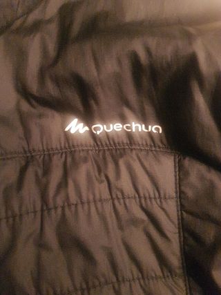 Cazadora para hombre de Quechua (marca Decathlon) talla S. Color negro. Revisar fotos. Señales de uso en zona interna a la altura de la barbilla.