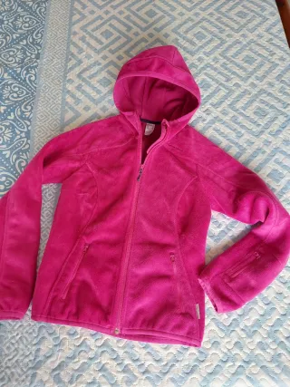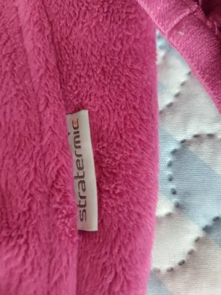 Polar Strat-Thermic con capucha comprado en Decathlon. Tejido muy gordo y calentito, aterciopelado. Le corte la etiqueta larga de dentro antes de probarselo y ya no lo pude cambiar. Está NUEVO. Color rosa fucsia - Cierre de cremallera completo. - Dos bolsillos laterales con cremallera. - Un bolsillo en la manga con cremallera.