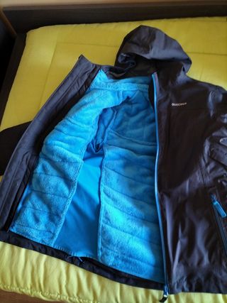 Cazadora deportiva Quechua, ideal para actividades al aire libre. - Diseño 3 en 1 versátil: chubasquero, polar y cazadora todo en uno! - Capucha integrada. - Cierre de cremallera frontal. - Bolsillos laterales con cremallera. - El único desperfecto el de las fotos de la parte interior del cuello el resto en perfectas condiciones -En la etiqueta aparece talla M pero es una talla S (34-36).
