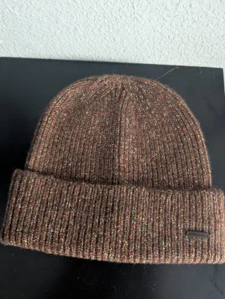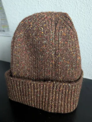 Gorro de punto con un diseño moteado en tonos marrones. Perfecto para mantener la cabeza abrigada. - Tejido de punto acanalado. - Detalle de etiqueta metálica en el borde.
