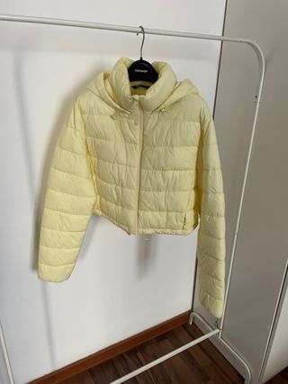 🧥 Talla: XL (queda corta / estilo cropped). 📐 Medidas: • 45 cm de ancho (espalda) • 48 cm de largo ✨ Chaqueta acolchada de nylon, ligera y muy favorecedora. 🪶 Tejido fino y cómodo, ideal para entretiempo. 💛 Color amarillo pastel muy bonito y fácil de combinar. 🧵 Diseño cropped con capucha, actual y estiloso. ✨ Estado impecable: muy poco usada, prácticamente nueva, sin marcas ni desgaste. 🌬️ Ligera, cómoda y con abrigo suficiente para días frescos. 📦 Envío cuidado en 24/48 h.