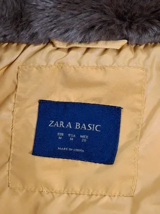 Cazadora acolchada de Zara Basic con cuello de pelo sintético. - Color amarillo mostaza. - Cremalleras en bolsillos delanteros y mangas. - Forro interior. - Cierre central con cremallera. es entallada y cortita