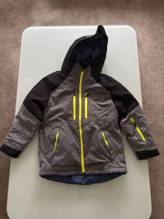 Abrigo de nieve para niño, ideal para mantener el calor en días fríos. - Diseño con capucha. - Cremalleras de color amarillo brillante. - Bolsillos frontales con cremallera.
