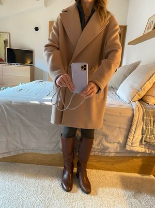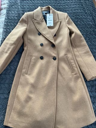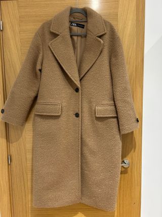Abrigo de paño de Zara en color camel. Un clásico atemporal. - Diseño de doble botonadura. - Cuello solapa. - Bolsillos laterales.