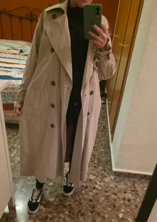 Gabardina de color camel claro de zara, talla Xs overside. Casi nueva, la vendo porque me está grande como se puede observar en las fotos, con un buen planchado ideal - Diseño atemporal. - Cierre de botones. - Bolsillos laterales.