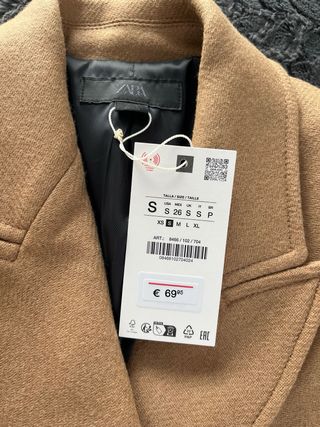 Elegante abrigo de Zara en color camel, perfecto para añadir un toque sofisticado a tu vestuario. Nuevo abrigo largo estructura color camel/beige talla xxl con chaleco plumón interior para días de más frío.detalle de mangas con tira medidas aprox: entre axilas 64cm entre hombros 54cm largo de espalda 110cm largo de cara 100cm mangas 64cm no rebajo. no negocio. pvp tienda 199e
