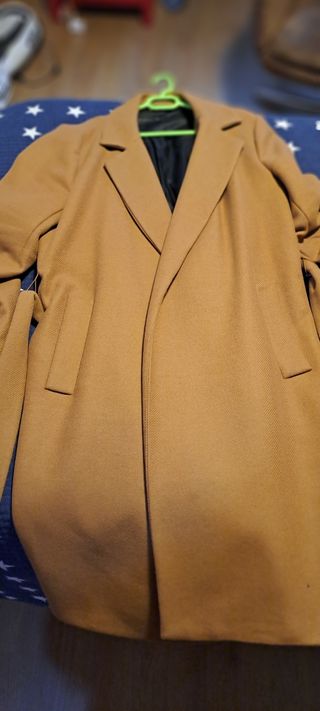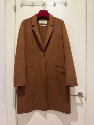 Abrigo de paño color camel, de Zara, corte masculino, muy poco uso - Cierre de botón. - Bolsillos laterales