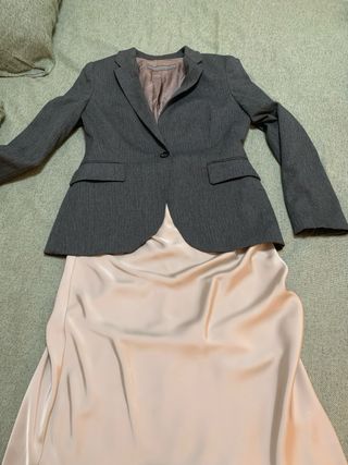Elegante blazer de Zara con un sutil diseño de espiga. El forro interior es de un suave tono rosa. Preciosa chaqueta como nueva muy cuidada, precio en tienda temporada anterior 49 e. Se vuelven a llevar mucho y este tejido es para llevar con abrigo o sola para más Marzo . talla L pero para M también queda bien, yo llevo las dos tallas y me queda muy bien y cómoda,tono predominante gris y marrón, puedes combinarla de varias formas, con tonos camel queda muy bien y con negro también, con la falda satinada es ideal también la tengo en mi armario por si la queréis ver - Diseño de espiga - Forro interior rosa - Cierre de un botón