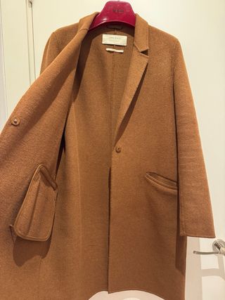 Abrigo elegante de Zara en color camel. Un básico atemporal para cualquier armario. - Diseño de corte recto. - Solapa ancha. - Cierre de botón. - Bolsillos laterales.