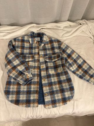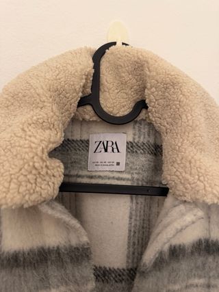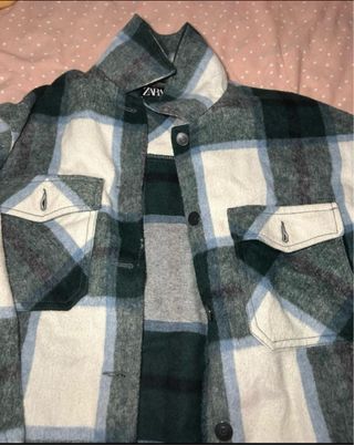 Preciosa camisa de cuadros de Zara, perfecta para el entretiempo. Está forrada por dentro con un tejido muy suave y agradable al tacto. - Talla: No especificada en la imagen. - Bolsillos funcionales a los lados. - Cierre de botones.