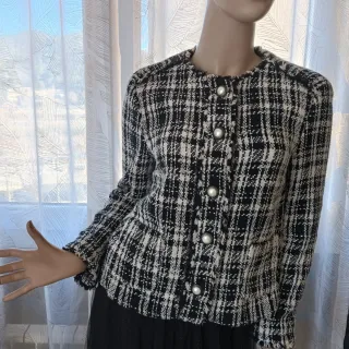 Chaqueta tweed cuadros blanco y negro
