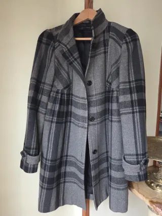 Abrigo Zara Cuadros Negro Gris