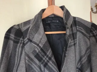 Abrigo de la marca Zara con un diseño de cuadros. - Diseño de cuadros en blanco y negro. - Tejido con textura.