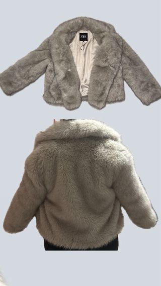 Abrigo Zara Gris Simil Ante y Pelo