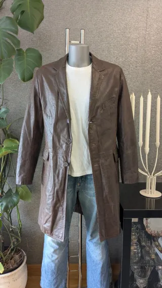 Chaqueta larga de piel para hombre. - Cierre de botones. - Bolsillos frontales e interiores