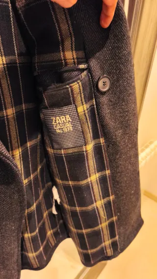 Abrigo de cuadros Zara con un diseño clássico. Talla XL europa - 100% Lana italiana - Cuadros en tonos azules y grises. - Cierre de botones + botón extra para reparo - Puños con botones.