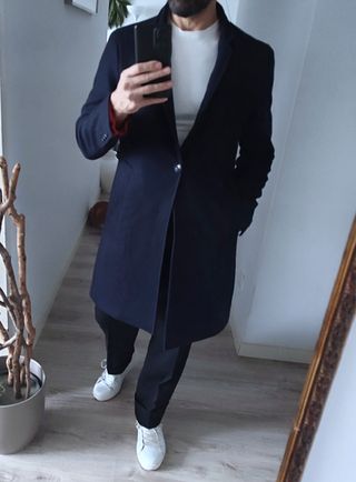 Elegante abrigo largo de paño de la línea Zara Men, ideal para un look formal, smart-casual o incluso para darle un toque sofisticado al streetwear. El corte clásico y su longitud por debajo de la rodilla ofrecen una silueta atemporal. Confeccionado con un tejido de alta calidad que aporta calidez: 80% lana y 20% poliamida/nylon. Perfecto para el invierno y el entretiempo. Llévalo sobre un traje, con jeans y jersey, o con turtleneck para un estilo nórdico. ¡Prenda de abrigo de lana de marca top, perfecta para cualquier ocasión! - Marca: Zara - Talla: M (EUR), 38 (MEX) - Color: Gris Oscuro / Marengo (Dark Gray) Envíos a toda España