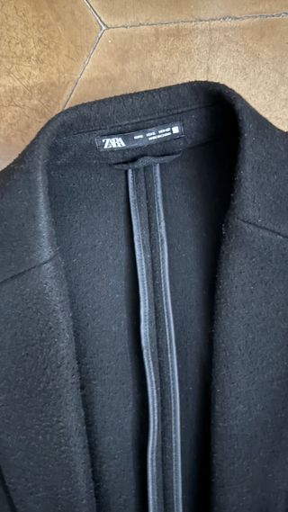 Abrigo de corte muy elegante. Queda muy bien puesto. Para hombre. Marca Zara. Color Negro. Talla XL. Usado una temporada. En muy buen estado. Envío o posibilidad de recoger en Molins de Rei NOTA: Uno de los bolsillos está descosido por dentro.