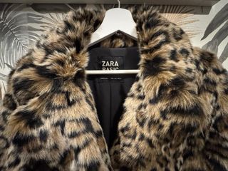 Chaqueta con estampado de leopardo de Zara. Es una prenda de pelo sintético muy suave y cálida. - Cierre de cremallera. - Diseño de leopardo. - Material de pelo sintético.