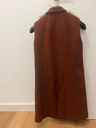 Chaleco largo de Zara con un diseño elegante y moderno. Combina un tejido liso en tono marrón con detalles de pelo sintético en la parte superior. Medidas sixa a sixa 41 cm Largo 84 cm - Chaleco largo - Detalle de pelo sintético - Color marrón y multicolor