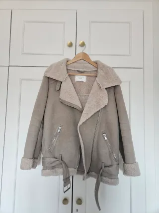 Abrigo estilo borrego de Zara. - Diseño oversize. - Detalle de pelo en cuello y puños. - Cierre de botones. - Bolsillos laterales. Con etiqueta . Talla grande para S o M no es negociable lo rebajo 10 eurs .