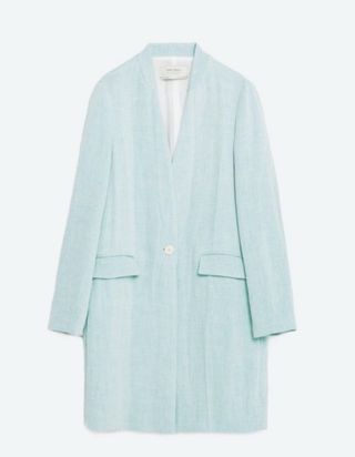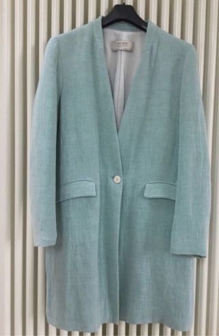 Abrigo ligero de Zara en color verde azulado. - Diseño abierto. - Bolsillos frontales. - Cierre de un botón.