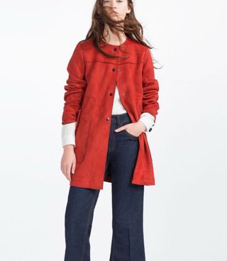 Abrigo de la marca Zara en color rojo. - Diseño con cuello mao. - Cierre de botones. - Bolsillos frontales. - Puños con detalle.
