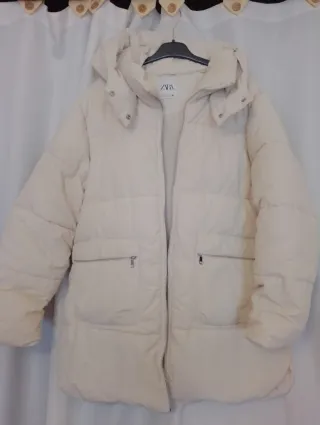 Abrigo acolchado de Zara, en color beige/hueso. Es una prenda cómoda y cálida. Muy a rugoso e impermeable. Chaquetón oversize para mujer o chica. Talla XXL - Diseño con capucha. - Cierre de cremallera. - Bolsillos con cremallera exteriores Muy buen estado. Ideal para el invierno. Calentito. Zara, woman, trafaluc, parfois, HyM,c&a, cya, Massimo Dutti, Cortefiel, Bershka, Pull, Stradivarius, Elcorteingles Benetton, nieve, invierno, Primark,chicas, parka, cazadora, chaqueta, chaquetón, plumas, plumífero, abrigos, saco